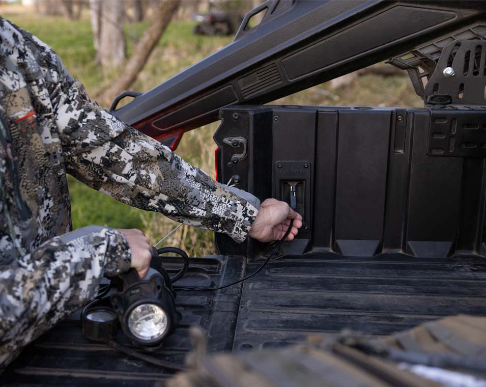 • Port d'alimentation 12V dans la benne avec interrupteur intégré au tableau de bord